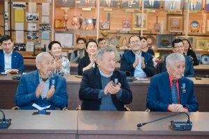 Ветеран Женис Куттыкадамов также выступил со словами благодарности, выразив гордость за продолжение дела старших поколений и высоко оценив нынешние достижения Федерации профсоюзов.