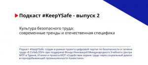 Во втором выпуске подкаста #KeepYSafe, реализуемого Международной организацией труда в Республике Казахстан, продолжилось всестороннее обсуждение актуальных вопросов безопасности и гигиены труда как одного из ключевых приоритетов современной социально-трудовой политики.