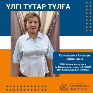 Үлгі тұтар тұлғалар – өз ісіне адалдықпен қарап, қоғамның дамуына үнсіз үлес қосып жүрген жандар. Осындай абзал азаматшалардың бірі – ұстаздық жолды өмірлік мұрат еткен, саналы ғұмырын білім мен тәрбиеге арнаған тәжірибелі педагог Алмагүл Камилашова.